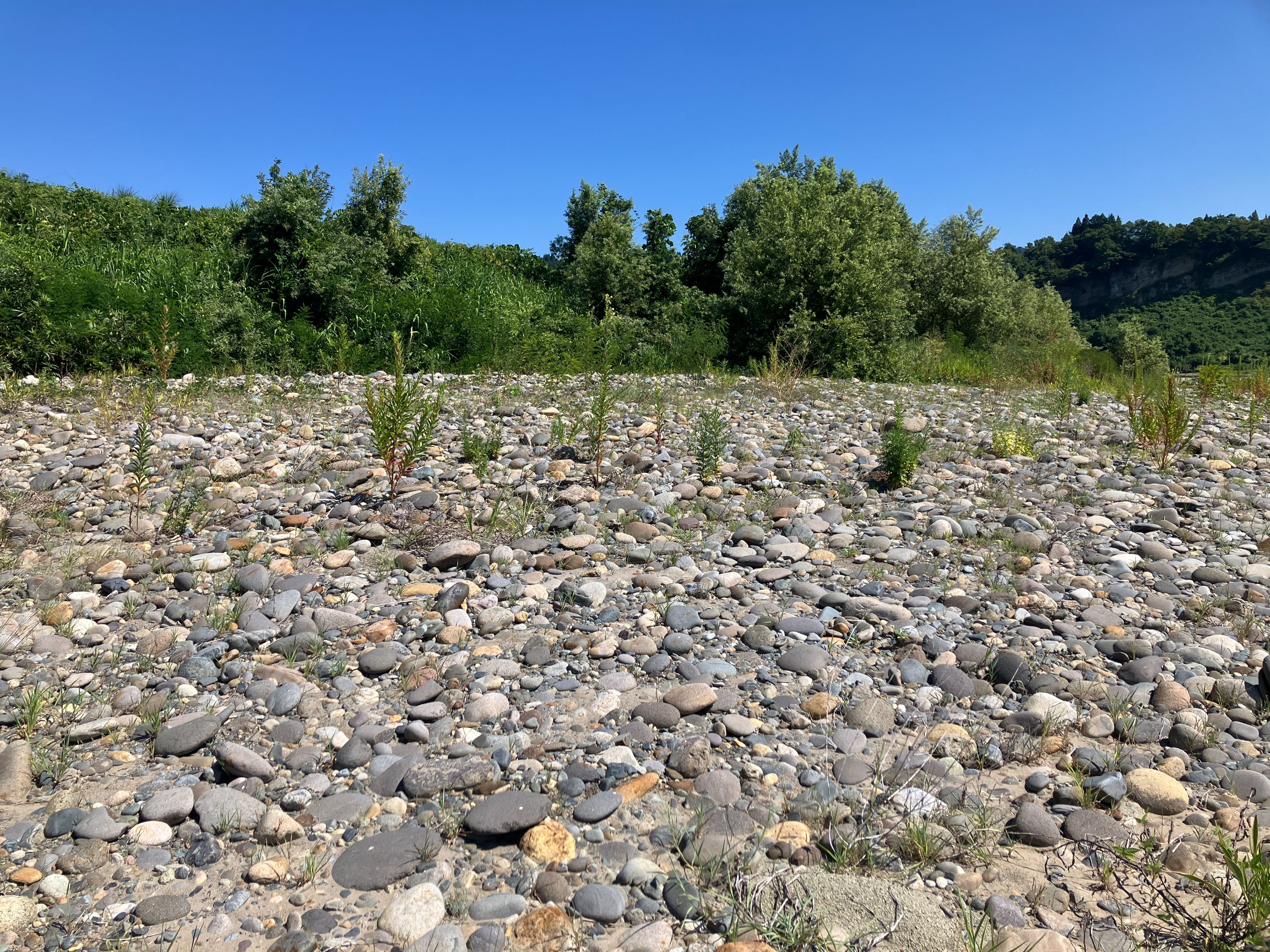 いせきのがんかにひろがるしなのがわのかわら信濃川の石の種類