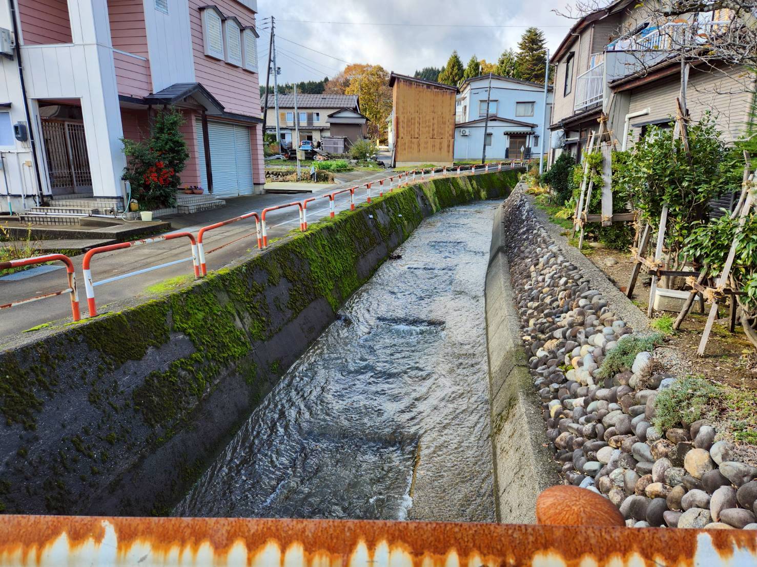【報告:市内在住 30代男性】 11月22日(土)片貝の町歩き まず、片貝町歩きをするに当たり、片貝町の個人的なイメージは、毎朝通勤で通り過ぎる町、花火で有名、そして独立性の高い町であるということ。 事前に提供いただいた地図等からも西の山肌部分の土地の高いところを中心に人々が生活をし、東に向かって徐々に土地が低くなり、水田が広がっている。南北は南から北へ向かって土地が低くなっており、吉谷の町歩きで学んだことと同様、土地の高い地盤の良いところで人は生活をし、土地の低いところで作物を作るという構図であると感じた。 実際に片貝総合センターから町に向かって歩くと徐々に登り坂となり、道は直線ではない見通すことのできない緩いカーブや道幅の狭い小路、しっかりとした十字路がないことなどを実感した。これは町全体で敵の侵入を防ぐためのものではなく、地形や川の流れ等により自然に形成され、歩き易い道として人々が整備したものであった。現在、道を整備するというと車で通ることを優先に見通しが良く、道幅を広げ、きれいな十字路等を整備するという考えになるが、昔は人が歩き易いように地形等を考慮して整備していたのである。