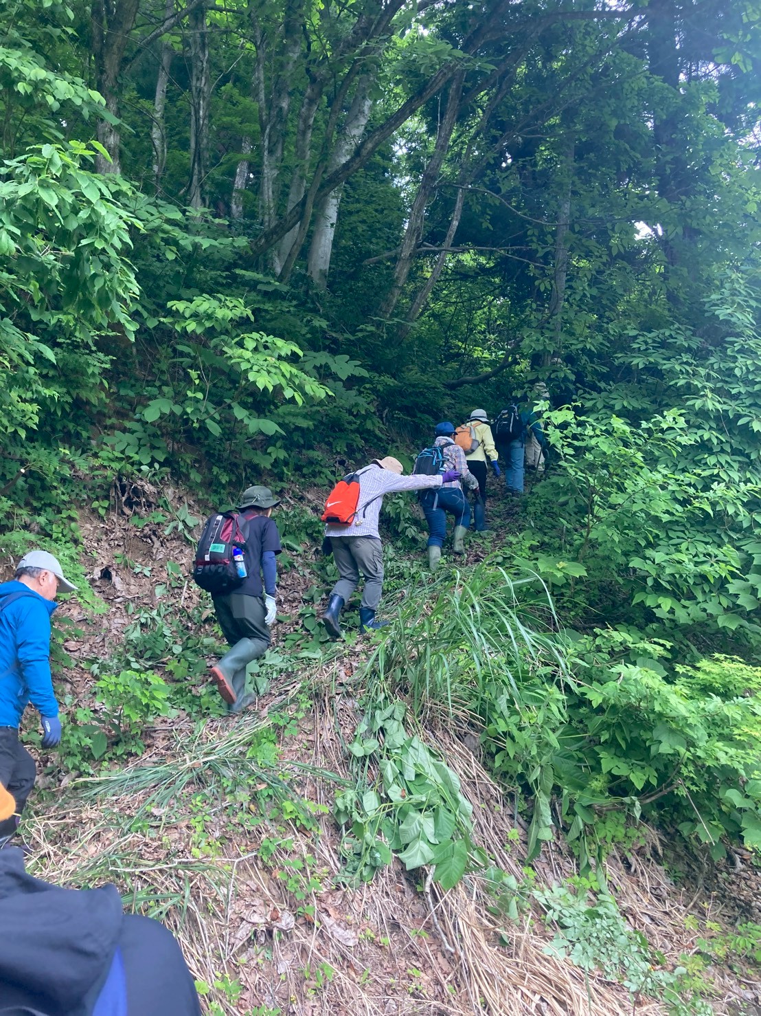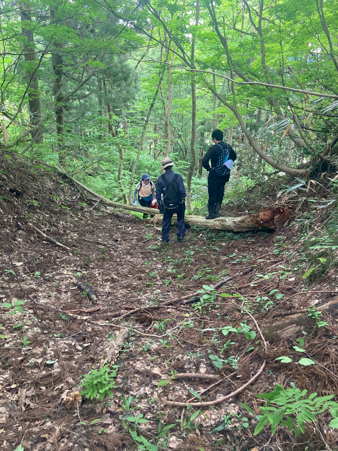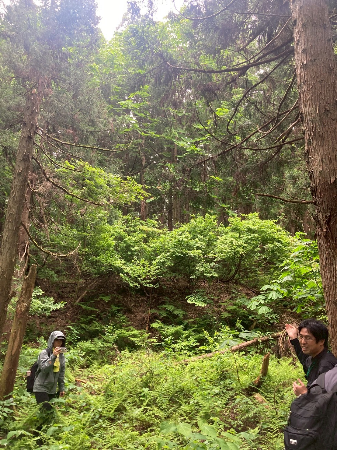 【報告:市内在住 50代男性】 南北朝時代〜戦国時代まで強固な防御力を誇った山城「内ケ巻川井城郭群」を当時の兵士の気持ちになって歩きながら学ぶ講座でした。 南北朝時代といえば「後醍醐天皇」「建武の新政」「楠木正成」「足利尊氏」など、教科書で見た事のある遠い昔の出来事と認識していた。小千谷と「認識していた南北朝時代」とは関わりが無いと思っていたが、今日でそのイメージは変わった。 魚野川と信濃川が合流点を見下ろす高場山の川井城(内ケ巻城)は政治的にも軍事的にも重要な役割を担う拠点であった。 県内では上越の春日山城、魚沼の坂戸城に次ぐ3番目に大きな山城のようだ。 当時は軍の移動手段のほとんどは徒歩。川に橋などない。だから川は浅いところしか渡れない。上越方面から関東に軍が移動する時などは川を渡るためこの地を通ら無ければならず(逆も然り)、北条が上杉を攻める時もこの城が防衛拠点となるのだそう。 小千谷は交通上の要地だったのだ! 雨が降りそうな空を気にしながら、兵隊が城を攻める視点で本丸跡目指して藪の中を歩き上る。土塁や堀切が多く上り下りがジェットコースターのように連続していて、体力が奪われる。「あっ!ここが上りやすそうだ!」と思えるところは必ず上から狙われるように配置されている。僕らは今日何度殺されただろうか?なんて皆で話をしながら歩む一歩一歩。この歩みこそが学びだ。 愛染明王で有名な川井の妙高寺も、この山の中腹にあったとの事。その跡地にも案内いただいた。大正時代までそこにあった妙高寺の面影は石垣や石畳に見る事ができ、多くの参拝者が踏みしめたであろう山道も、藪だらけの山道の中でも開けた場所な感じがした。 講座終了時に大粒の雨が降ってきた。学びに来た我々に愛染様が取り計らってくれたのだろうか。 現在は山の麓にある妙光寺。6月第2土曜に毎年あいぜん様のお祭りで愛染明王がご開帳だ。今日見た昔の妙高寺に想いを馳せながら手を合わせてこよう。