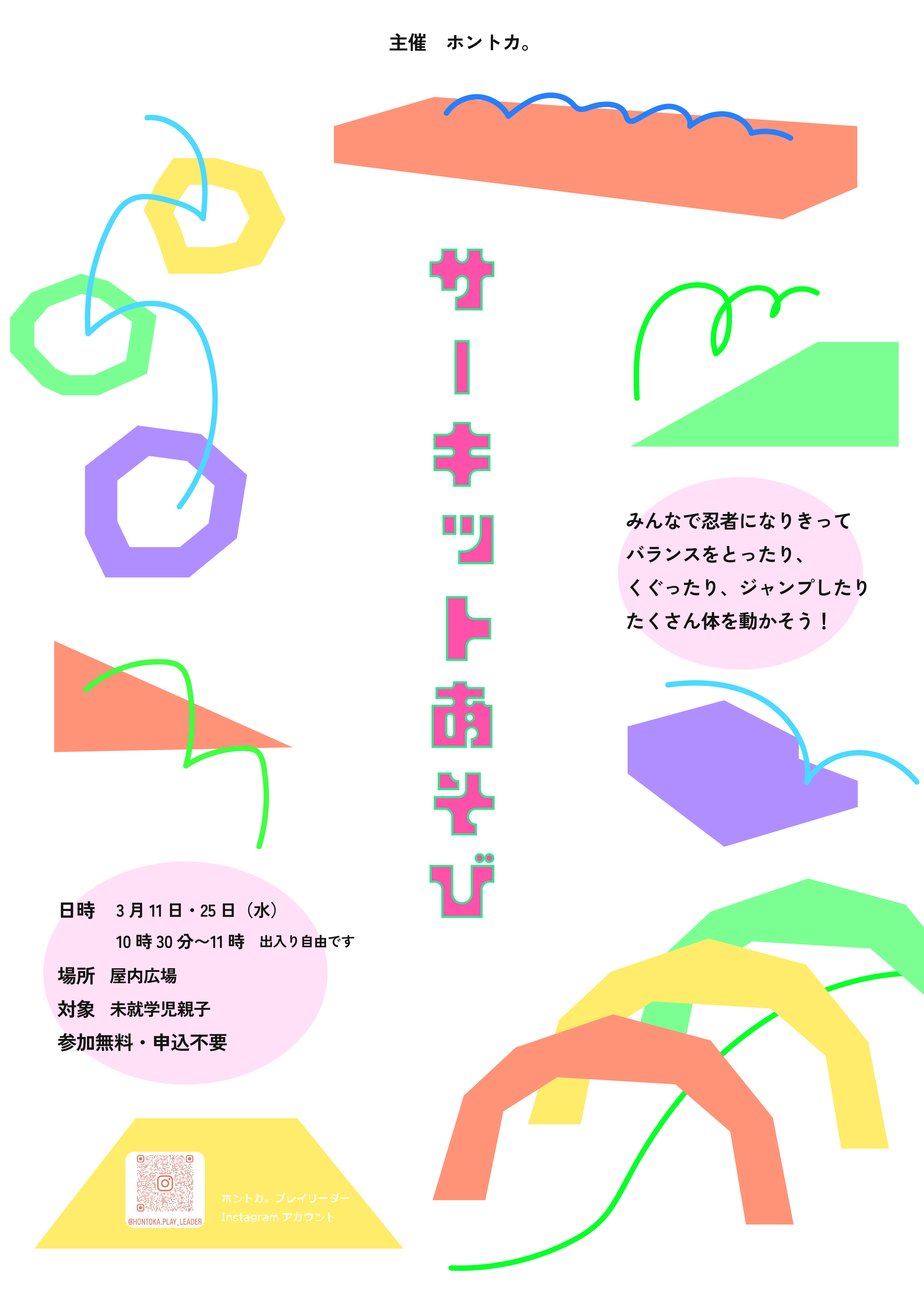 みんなで忍者になりきって バランスをとったり、 くぐったり、ジャンプしたり たくさん体を動かそう!
