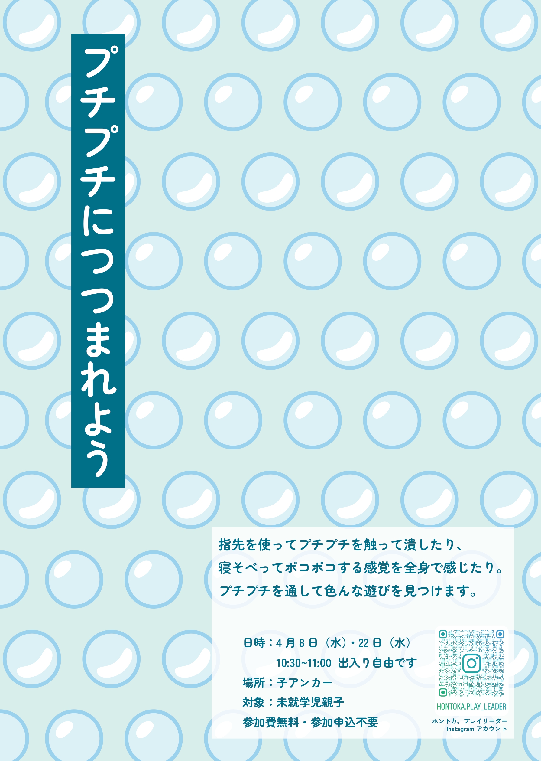 指先を使ってプチプチを触って潰したり、 寝そべってポコポコする感覚を全身で感じたり。 プチプチを通して色んな遊びを見つけます。