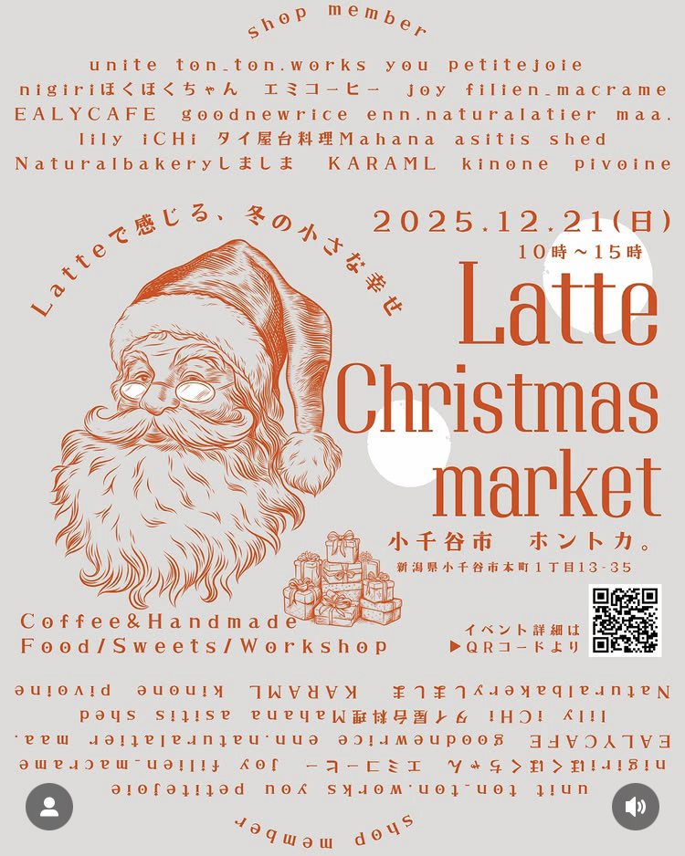 (出店者) KARAMEL(キャラメリゼしたナッツ) Unite(布小物) 和菓子と珈琲 you (和菓子、珈琲) iCHi(インテリア雑貨) natural bakery しましま柏崎(国産小麦・国産バター・無添加生地のパン) 自家製酵母スコーンとおやつ lily(スコーン) Filien.Macrame(マクラメアイテム) natural atlier enn(パウンドケーキとハンドメイドアクセサリー) tonton works(革製品) PetiteJoie(アクセサリー) エミコーヒー(コーヒー) EALY CAFE(チャイ、マフィン、スコーン) タイ屋台料理 Mahana(タイ料理) きのね(自家栽培で育てた植物) ほくほくちゃん(羽釜炊きごはんおにぎり) atelier asitis keiko.hosokai(動物性不使用の vegan スイーツ) Shed(セレクト雑貨、県内外のハンドメイド作家商品) maa.(ぬいぐるみ) グッドニゅ~ライス(にがおえ) joy(韓国子ども服) pivoine.accessory(ハンドメイドアクセサリー)