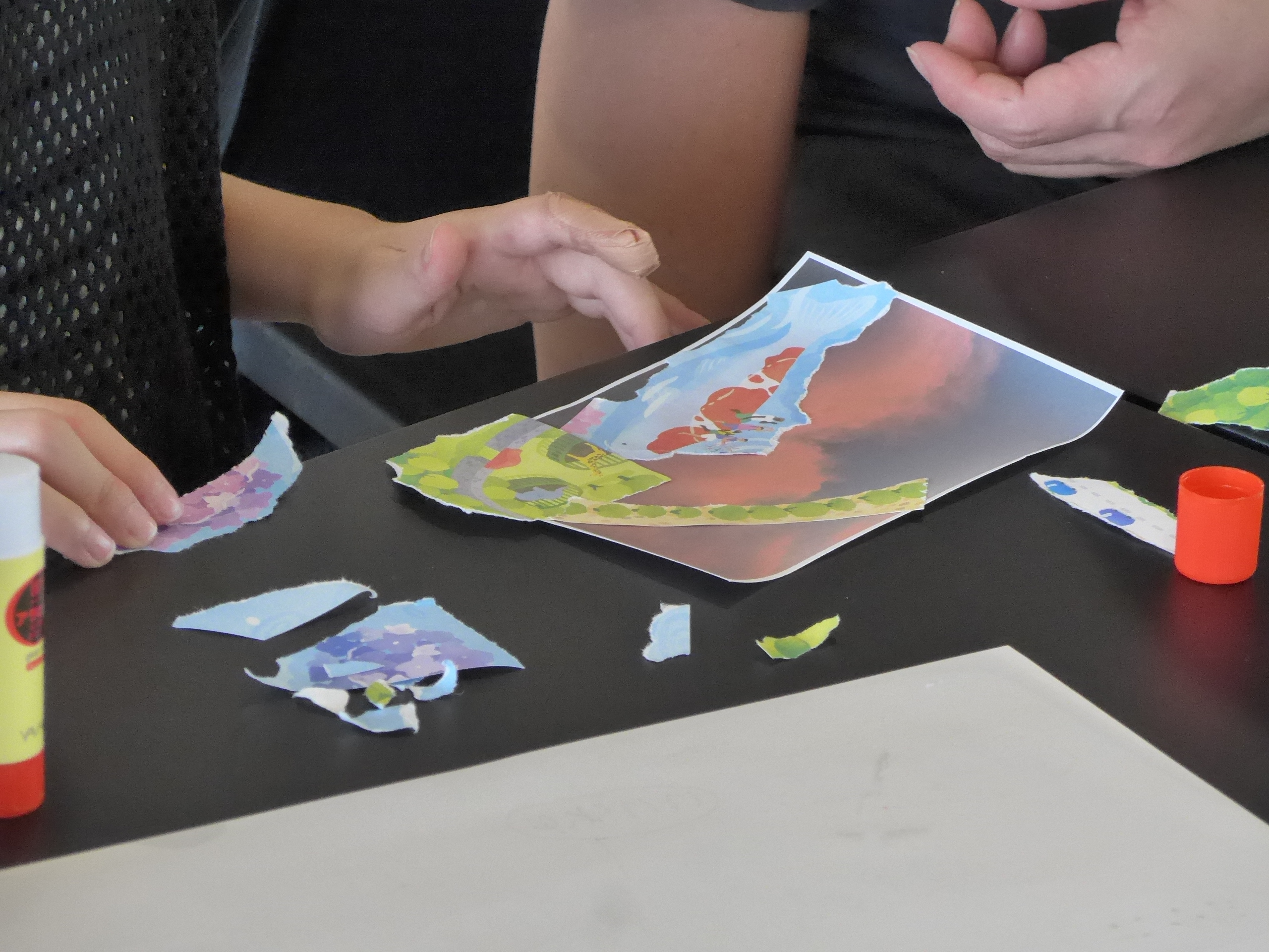 ◎敷き詰めた写真の上に 雪や土、葉っぱ、木の枝など小千谷の自然物を置いて「観察」と「クエスチョニング」を行います。 「どのように色が変化してきたかな?」 「この模様は何に見えるだろう」 「どんなイメージが浮かんでくる?」 「触ってみて、どう感じるか」 印刷した写真が時間とともに変化していく様子を観察し、問いかけながら対話を楽しみます。 小さいお子さんも、大人も楽しめるワークショップです。