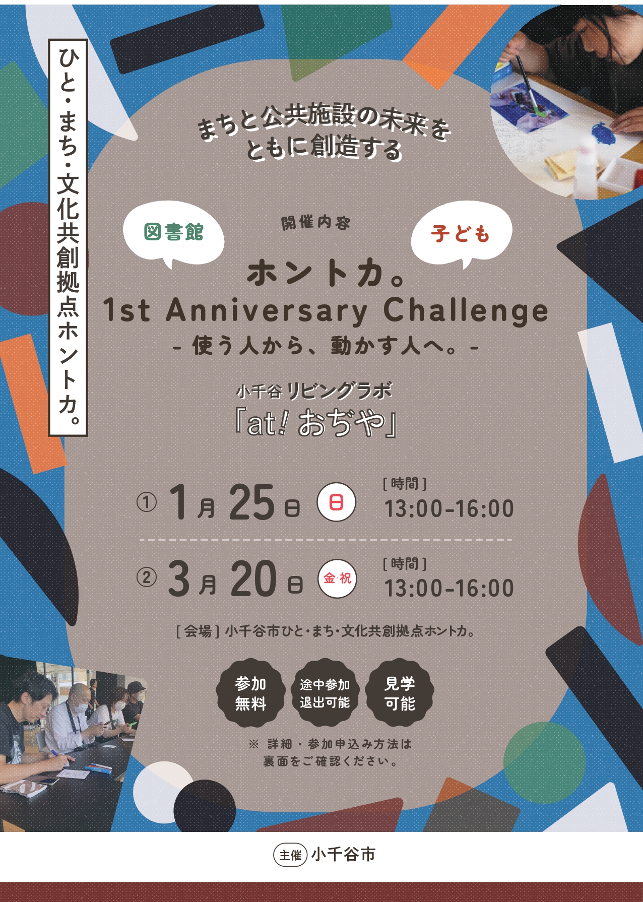 ホントカ。 1st Anniversary Challenge- 使う人から、動かす人へ。- を1月25日(日)、3月20日(金・祝)に行います。 「図書館」と「子ども」をテーマに、 1月と3月の両月の参加を通して、ホントカ。を“動かす”ことに挑戦するプロジェクトです。 今回は、「子ども」をテーマに、 ゲストとしてお招きした「小野久留美」さんについて、 1月・3月のワークショップ内容を紹介します。