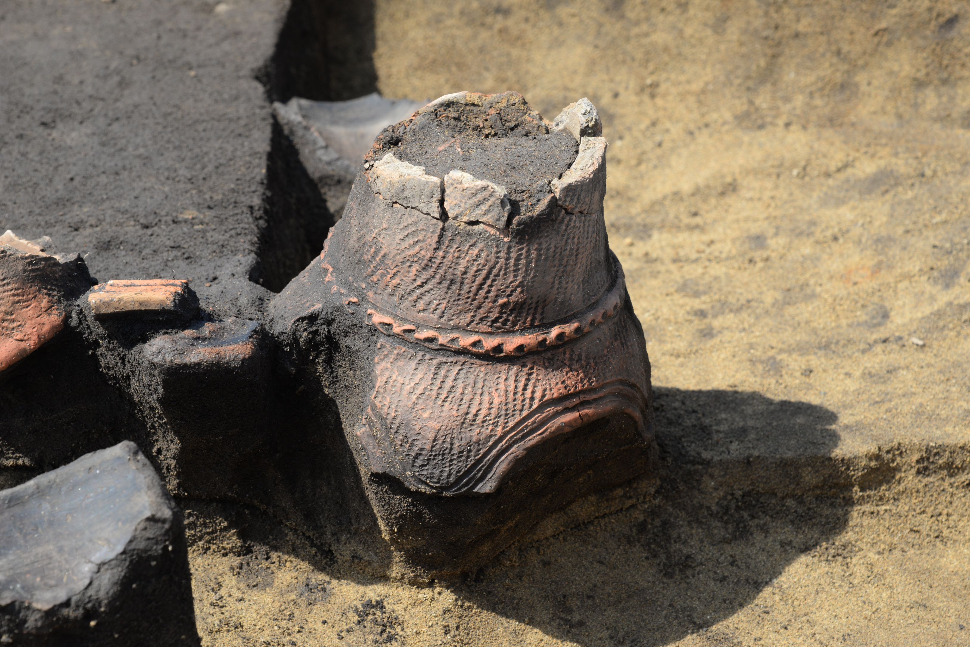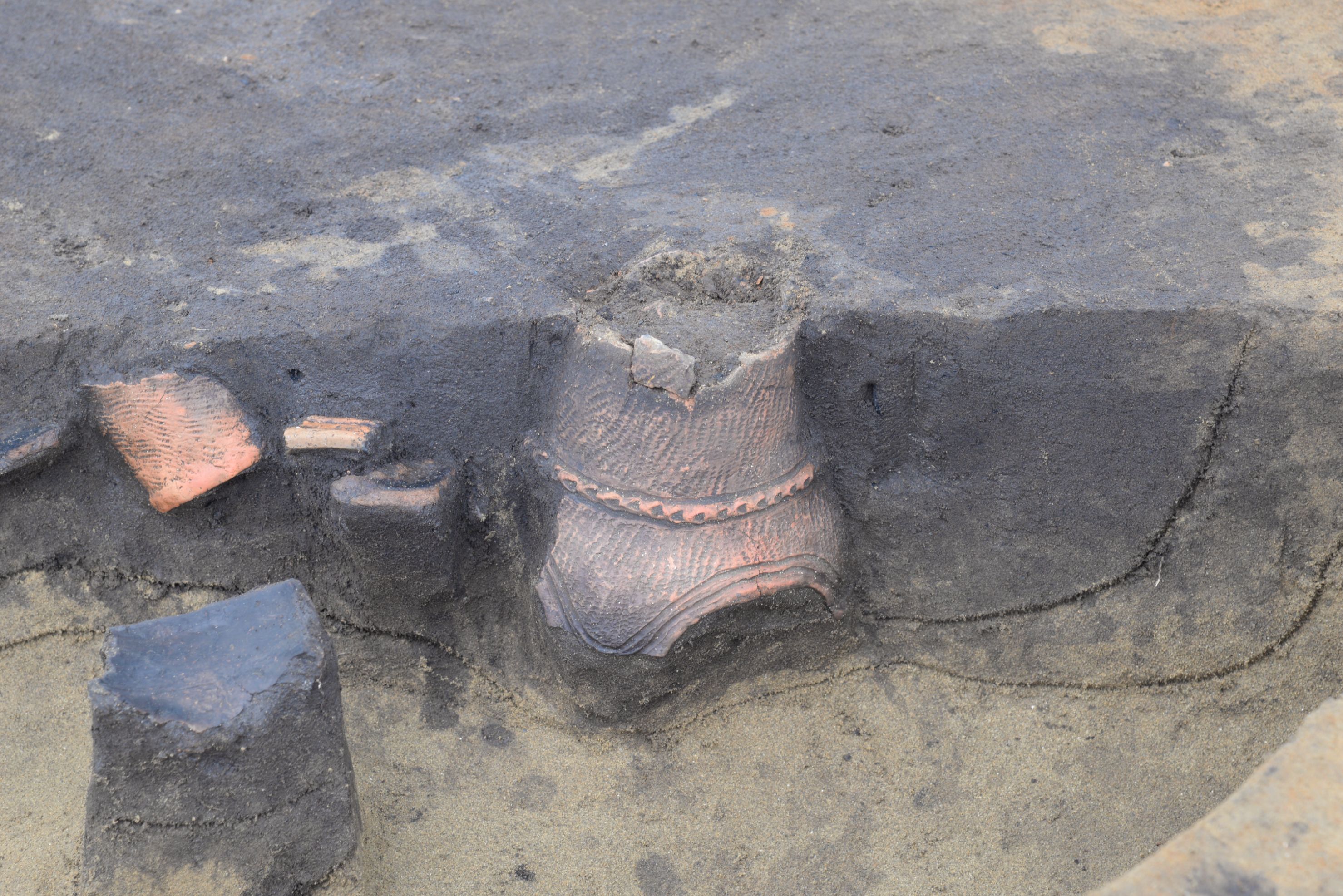 だいみょうじんいせきはっくつちょうさきろくちゃぷたーにじゅうごさかさにされたどきにせんにじゅうごねんはちがつようか土器の出方から遺構の性格を判断するのに最もわかりやすい例が、「逆さにされた土器」です。 わざと土器を逆さにして、直後に土を丁寧に埋めている様子が観察できます。