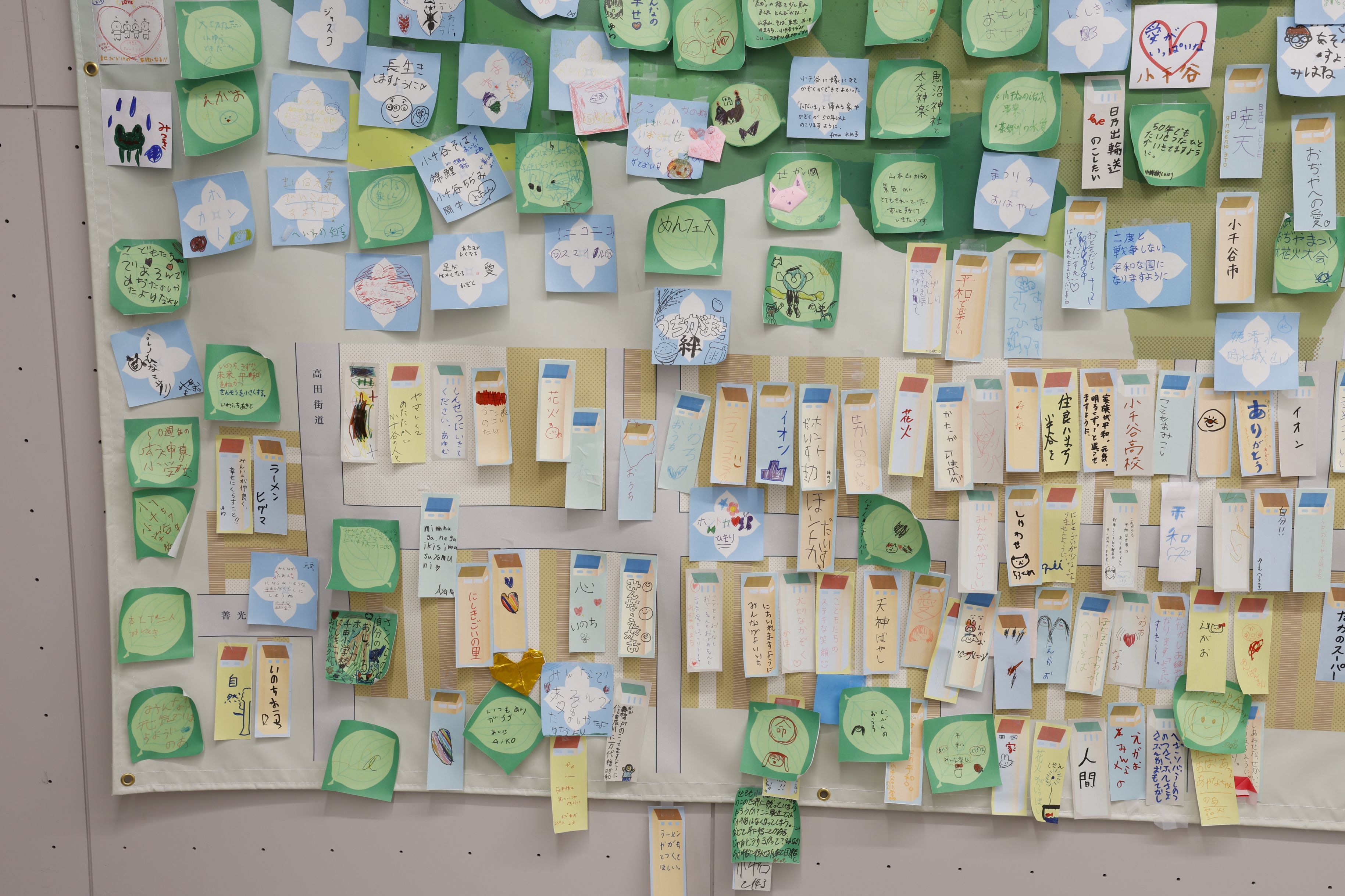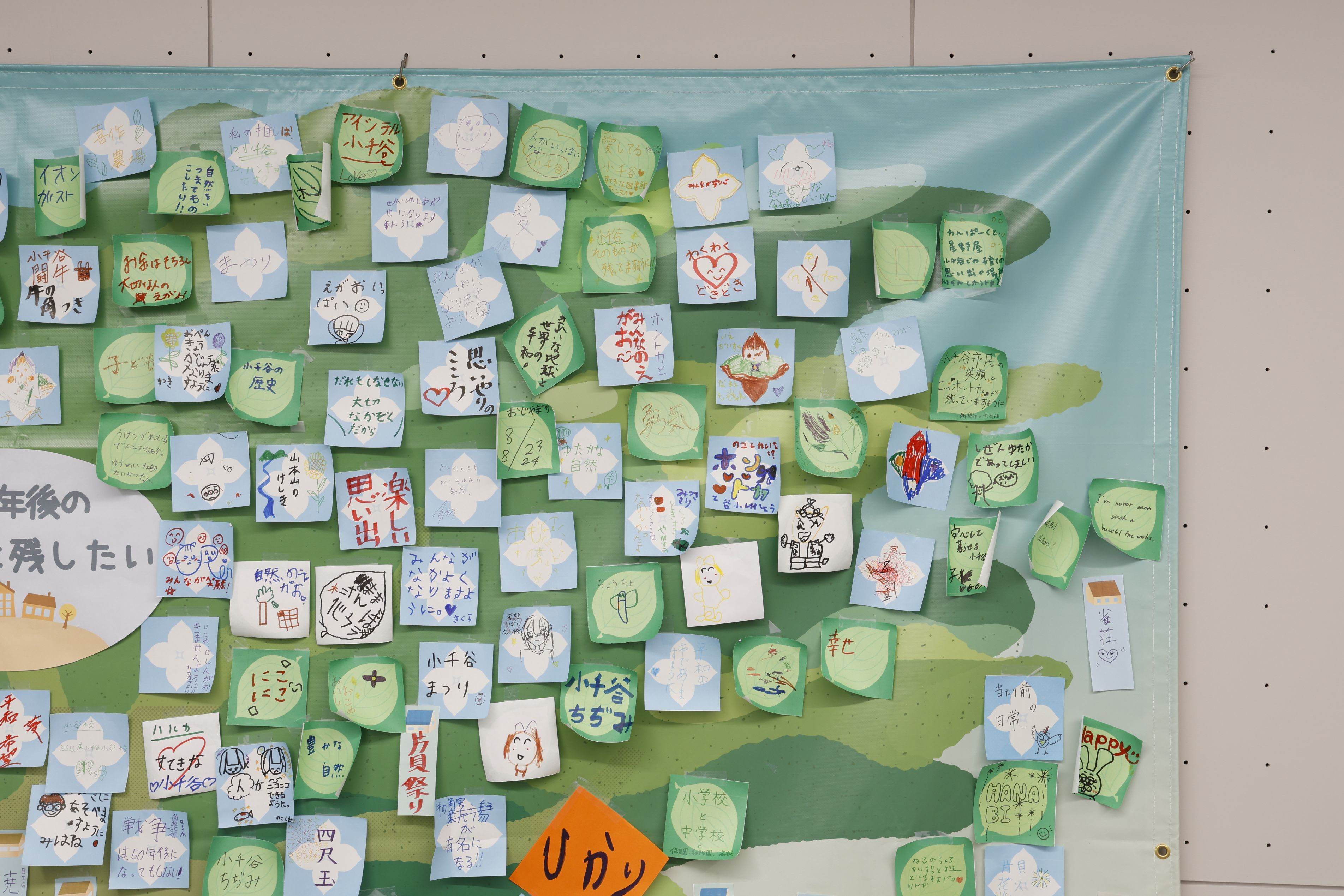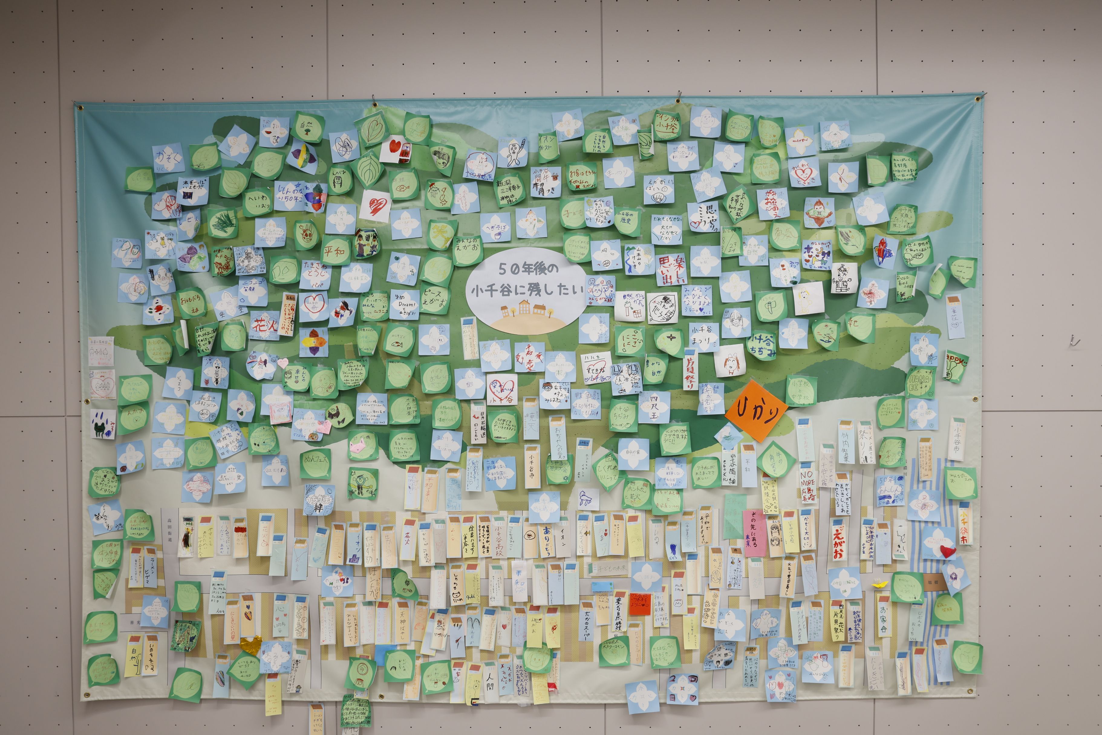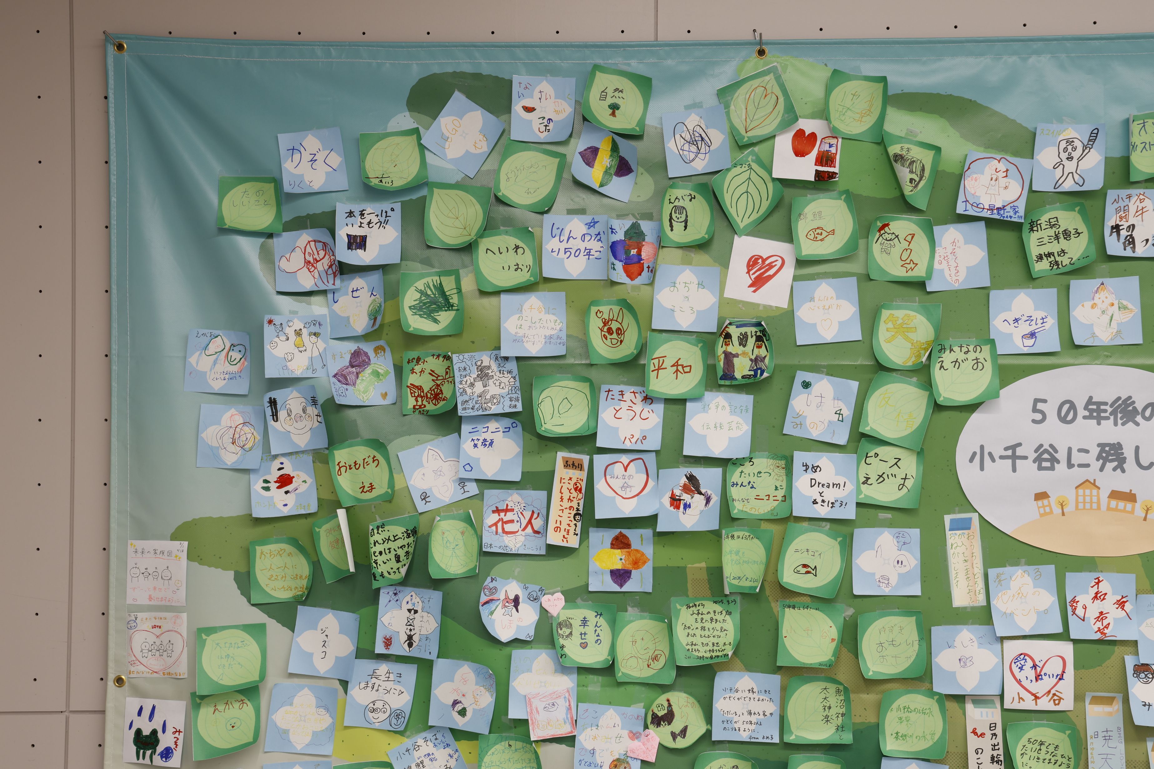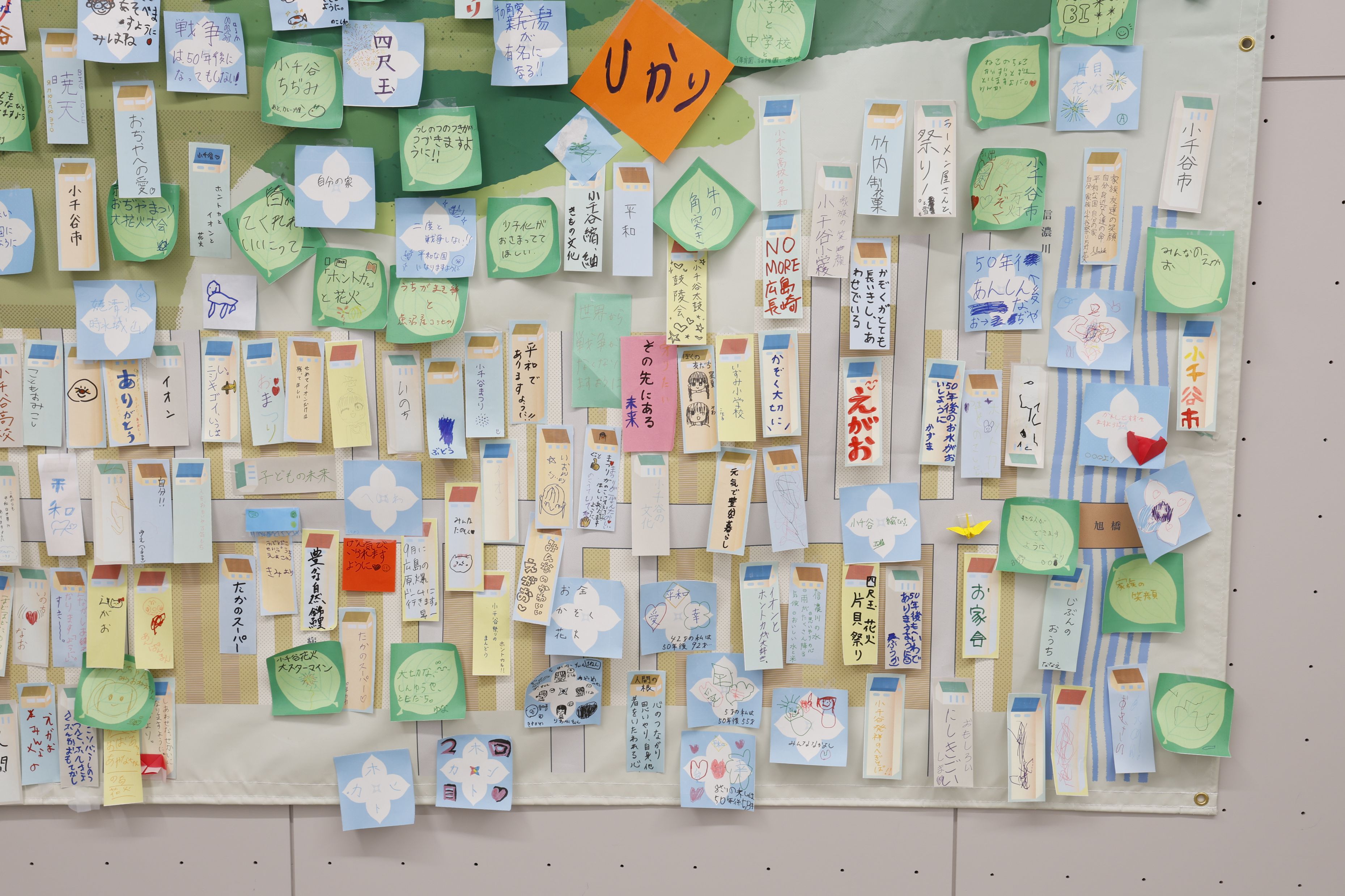 会期中、来館者の方に「50年後の小千谷に残したいもの・こと」を紙に書いて貼ってもらいました。