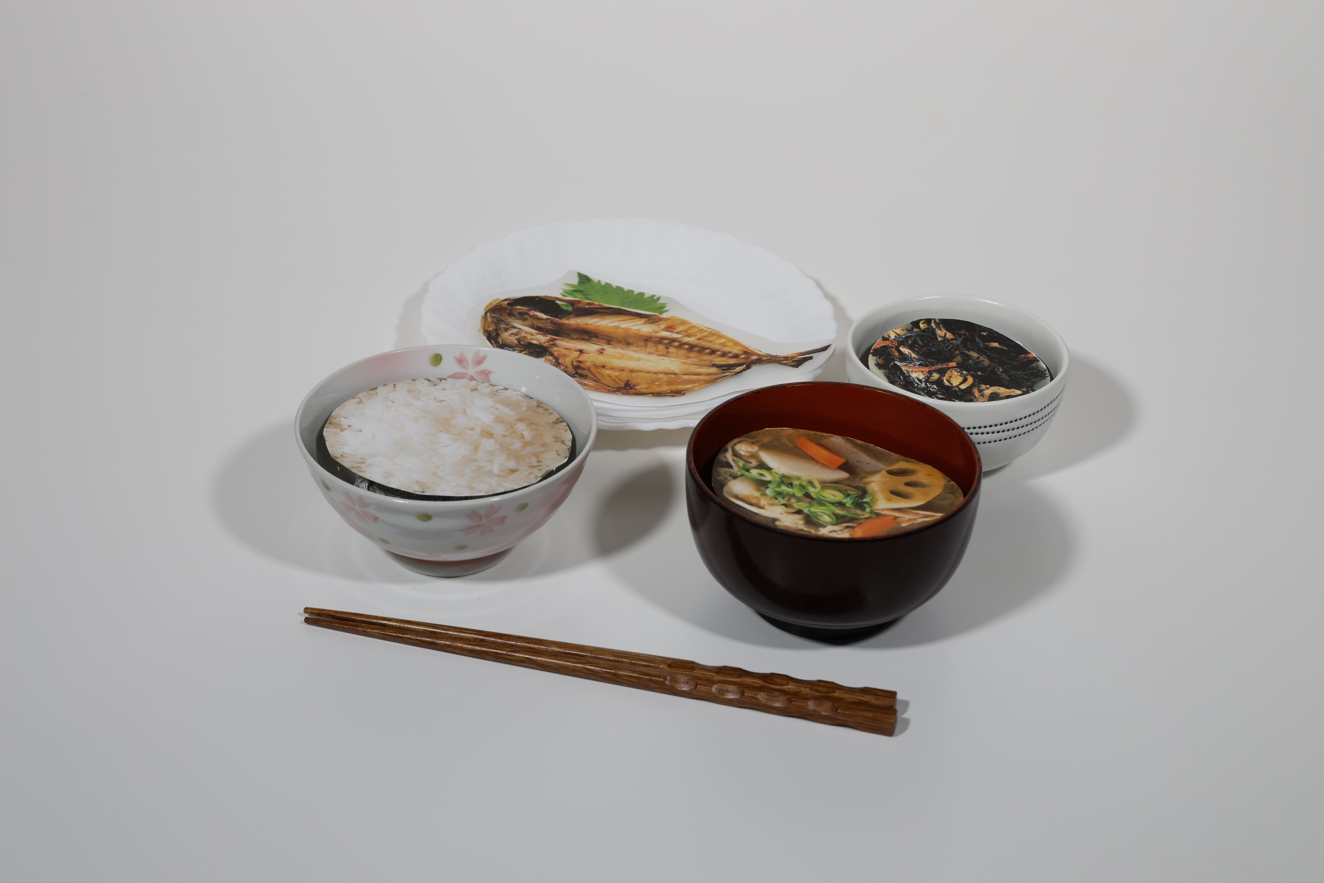 米を主食とする和食が主流で、一汁三菜が基本でした (写真はおかずが一品足りませんね…)